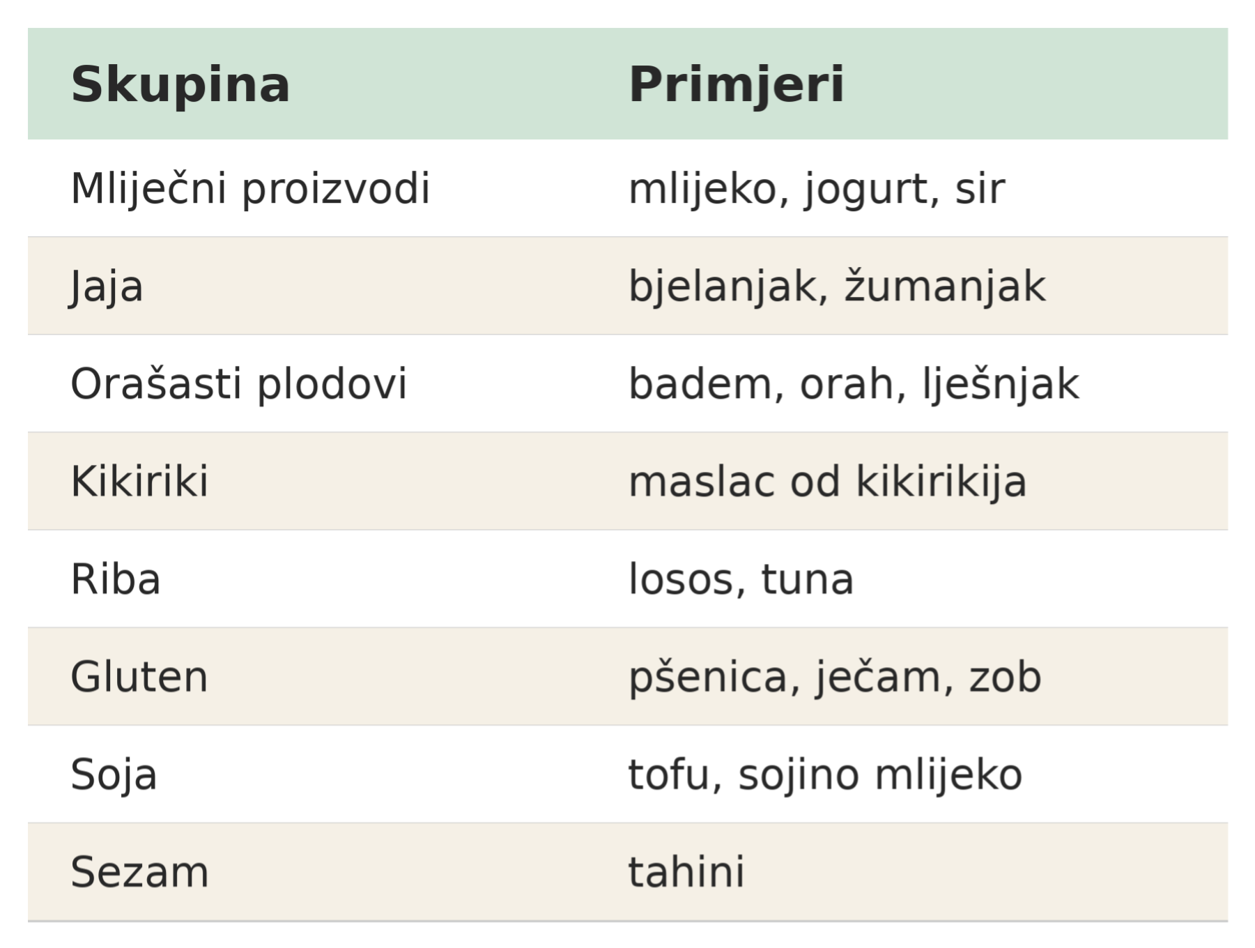 Ne uvoditi više novih alergena istovremeno. Ako dođe do reakcije, lakše je prepoznati uzrok.