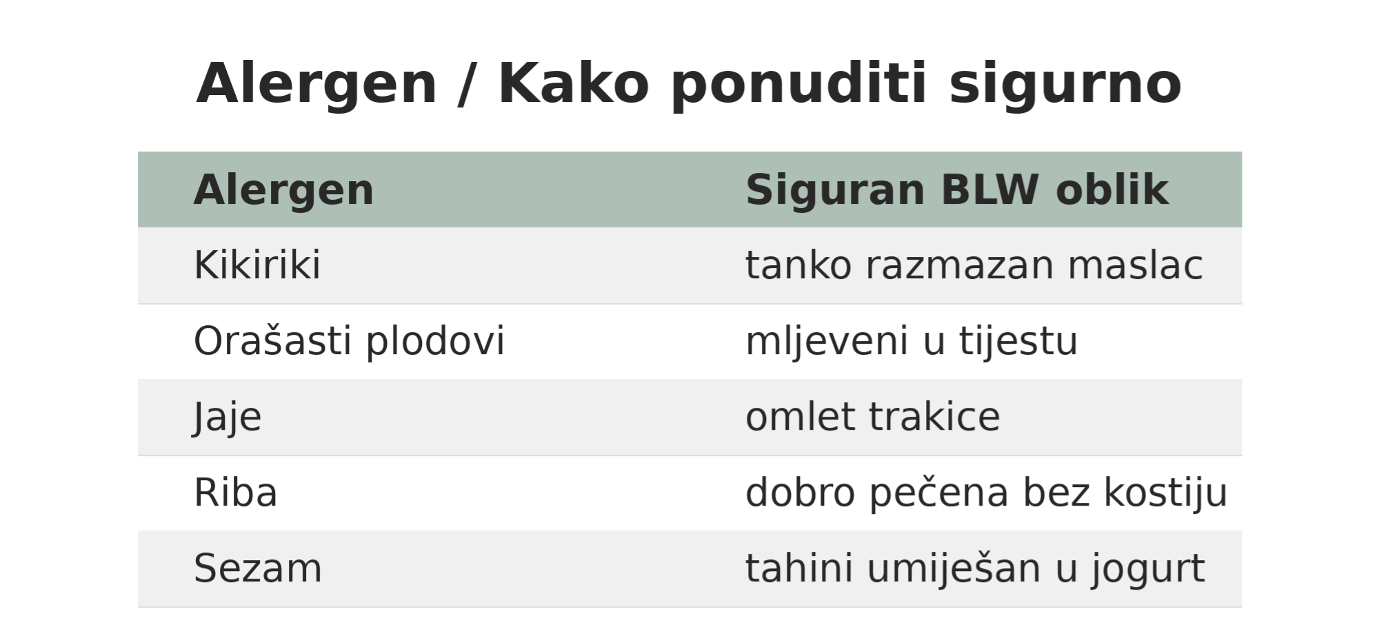 BLW pristup ne isključuje alergene. On ih uključuje, ali na siguran i promišljen način.