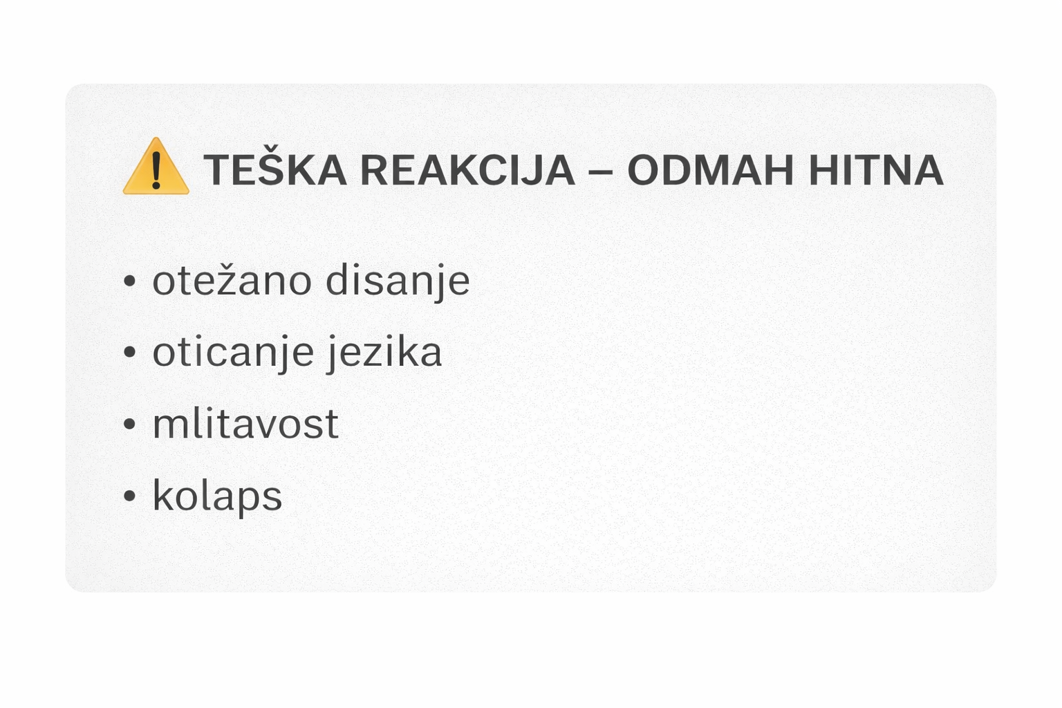 Teške alergijske reakcije su rijetke, ali ih je važno prepoznati. U takvim situacijama ne čeka se razvoj simptoma niti se promatra stanje - reagira se odmah.
