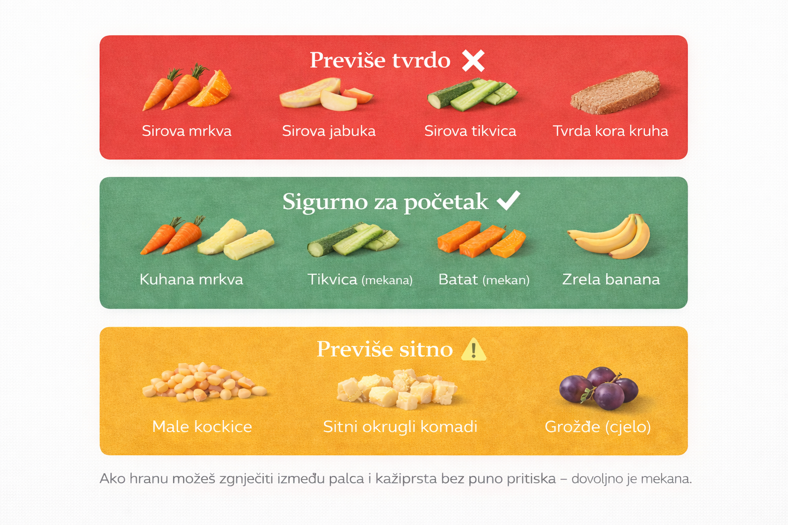 Internet je pun popisa, ali često bez jasnih objašnjenja o teksturi, veličini komada i sigurnoj pripremi. Upravo zato je važno razumjeti da sigurnost ne ovisi samo o vrsti namirnice, već i o načinu na koji je pripremljena.