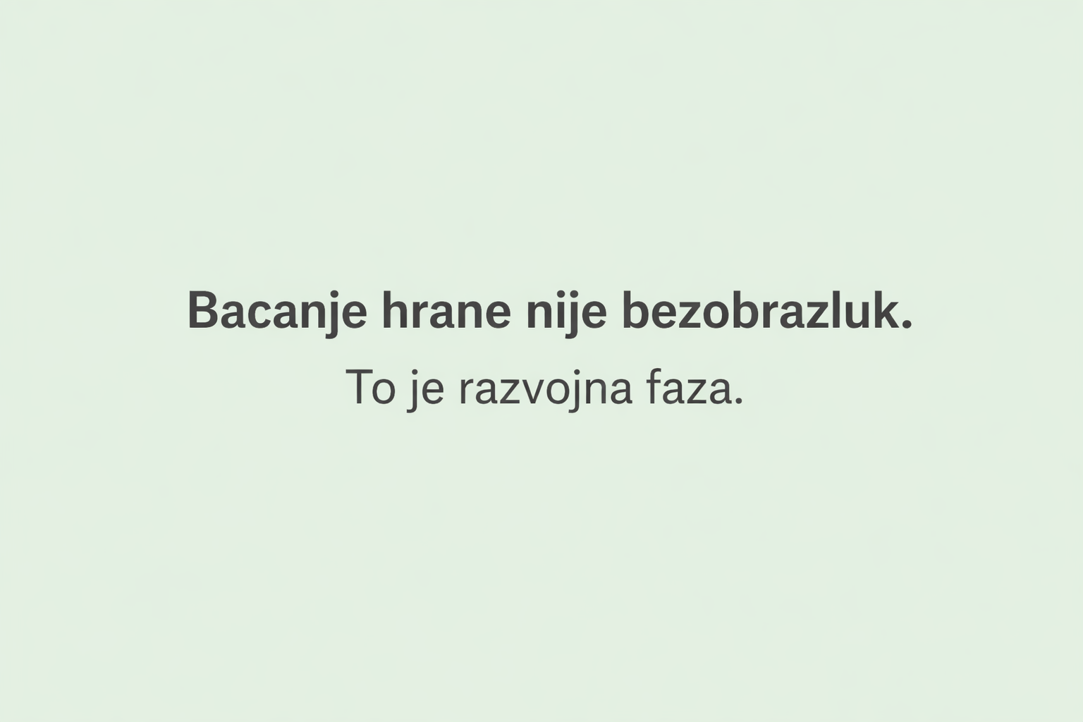 Važno je razlikovati razvojnu fazu od situacija koje traže dodatnu pažnju. U većini slučajeva odbijanje hrane i bacanje prolaze spontano uz dosljedne granice.